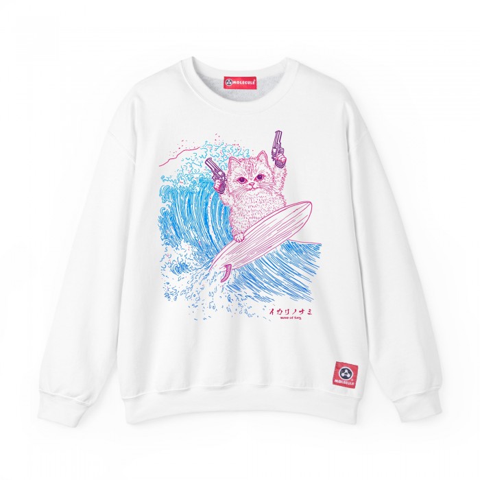 Sweatshirt MOLECULE® 331 SURFER CAT DTF Front Cotton Blend 300 Gsm White