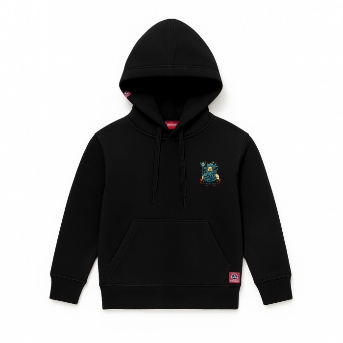 Kids Unisex Pullover Hoodie MOLECULE® 331 POSEIDON DTF Cotton Blend 300 Gsm Regular Fit Black