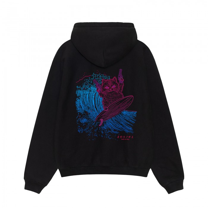 Unisex Pullover Hoodie MOLECULE® 332 SURFER CAT DTF Print Cotton Blend 300 Gsm Regular Fit Black
