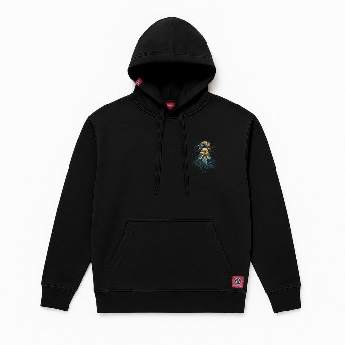 Pullover Hoodie MOLECULE® 3301 POSEIDON DTF Cotton Blend 300 Gsm Regular Fit Black