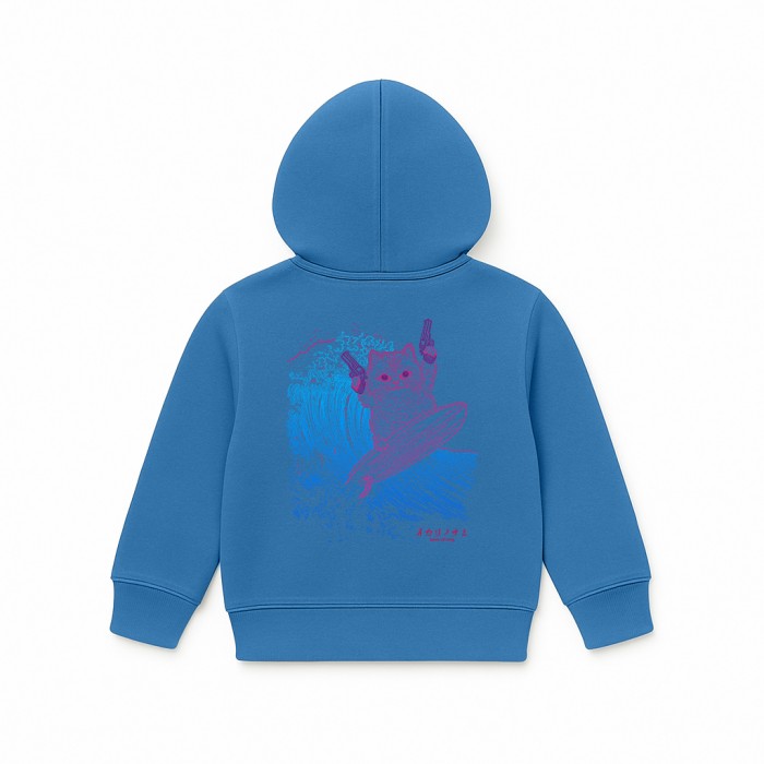 Kids Unisex Pullover Hoodie MOLECULE® 331 SURFER CAT DTF Cotton Blend 300 Gsm Regular Fit Indigo
