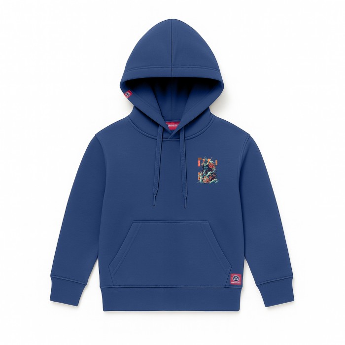 Kids Unisex Pullover Hoodie MOLECULE® 331 SAMURAI DTF Cotton Blend 300 Gsm Regular Fit Royal Blue
