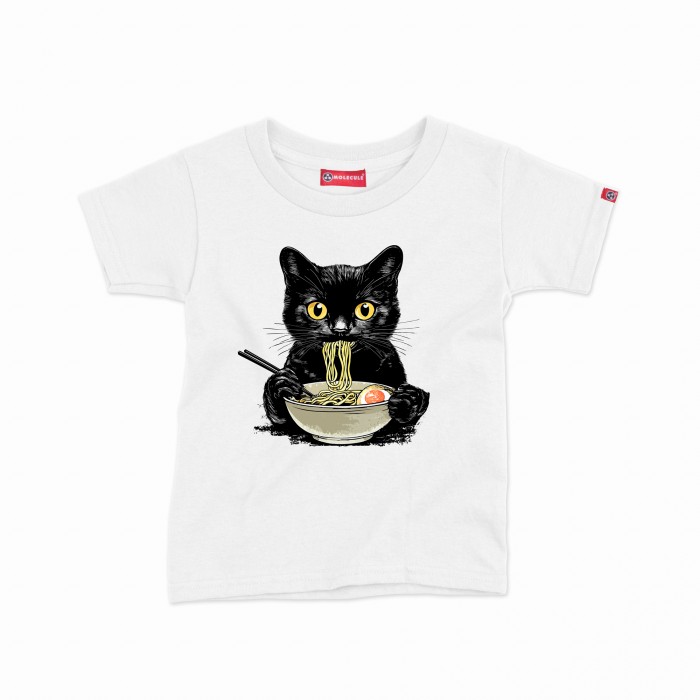 Kids Short Sleeve T-Shirt MOLECULE® RAMEN CAT Cotton White