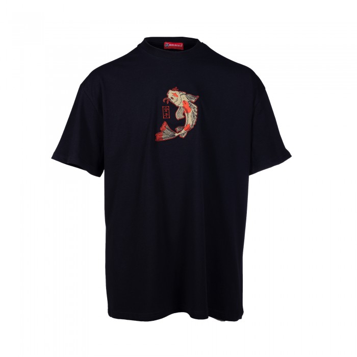 Premium Loose Unisex Short Sleeves T-shirt MOLECULE® GOLDEN KOI EMBROIDERY 9901 Organic Cotton 220 Gsm Loose Fit Black