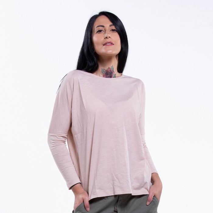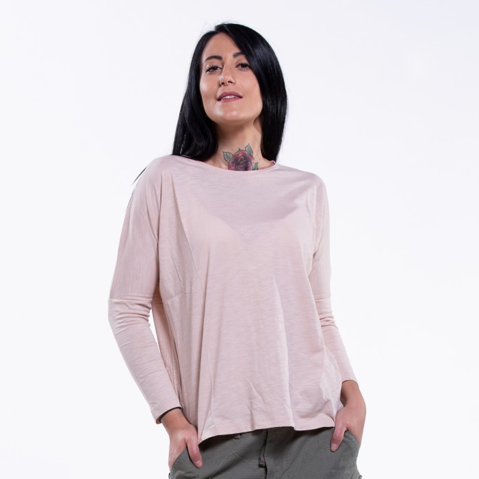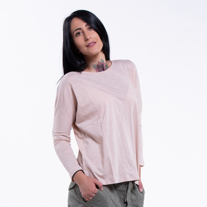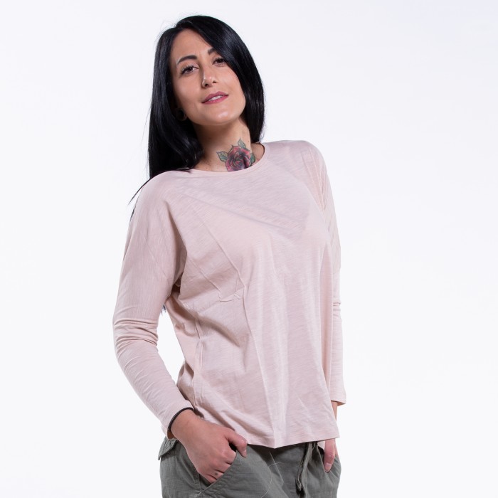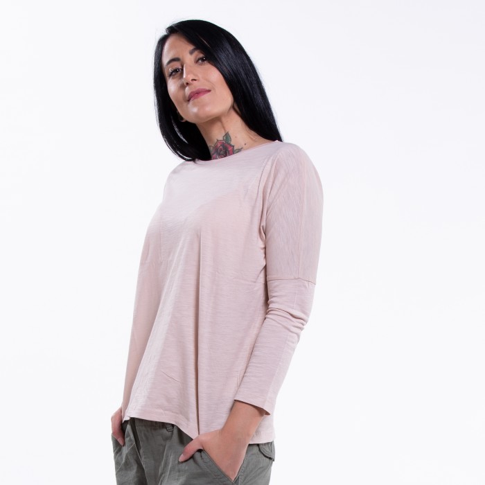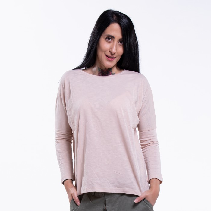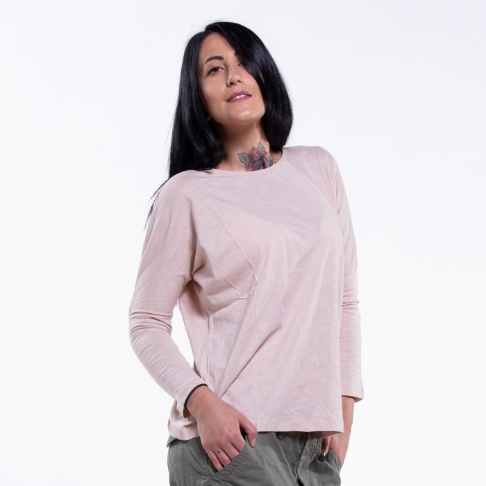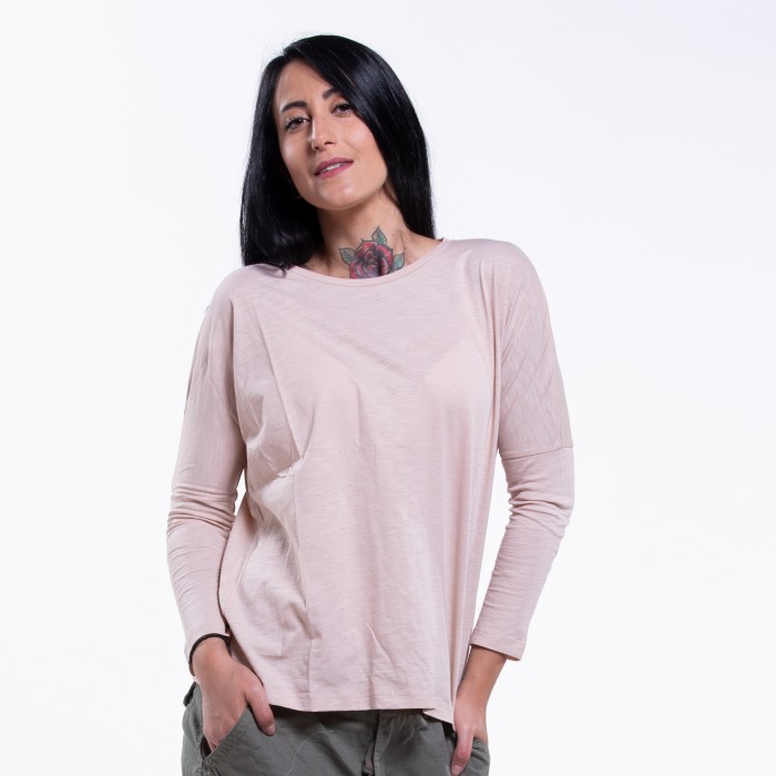 Women Long Sleeves T-Shirt JOIN CLOTHES® Drop Shoulder 120 Gsm Organic Blend Regular Fit Slub Mid Heather Clay
