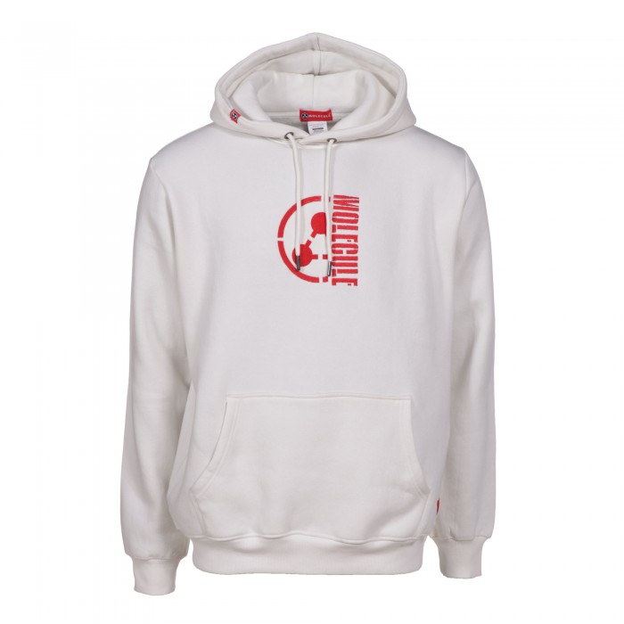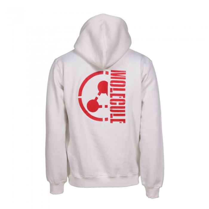 Unisex Pullover Hoodie MOLECULE® 777 EMBROIDERY HALF LOGO Cotton Blend 320 GSM Off White