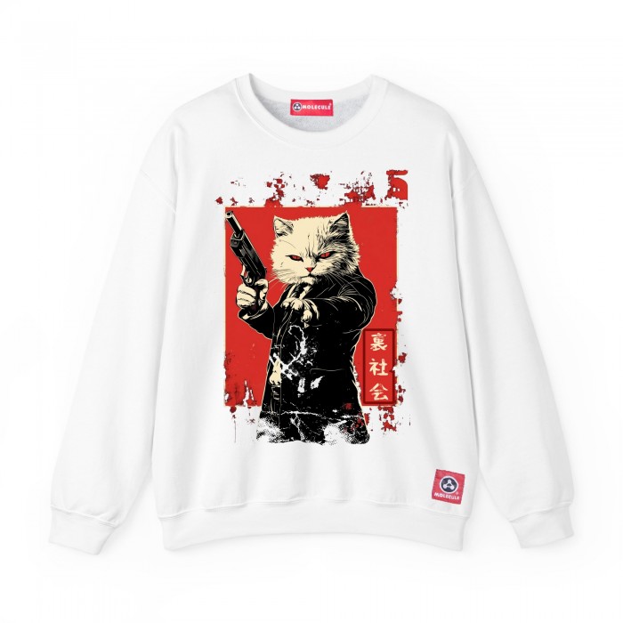 Sweatshirt MOLECULE® 331 MOBCAT Print Cotton Blend 300 Gsm Regular Fit White