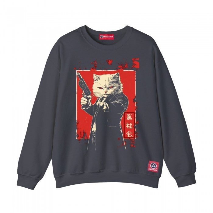 Sweatshirt MOLECULE® 331 MOBCAT Print Cotton Blend 300 Gsm Regular Fit Dark Grey