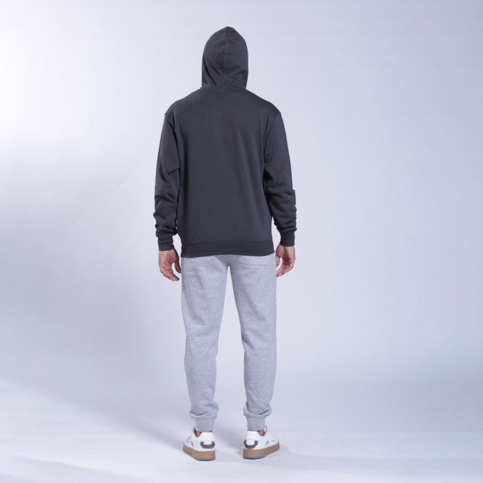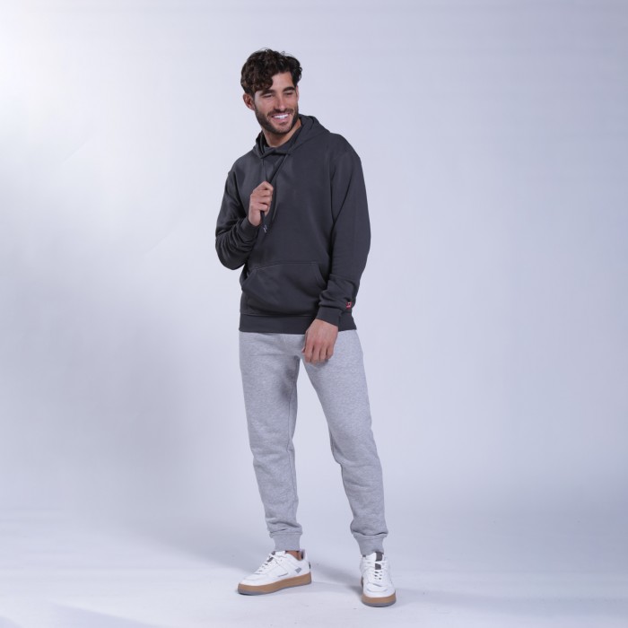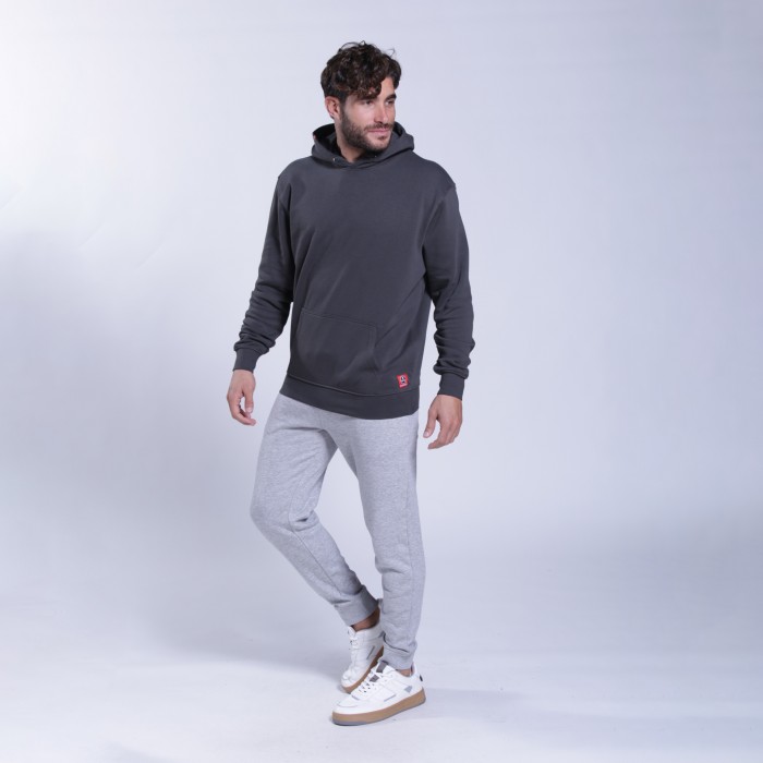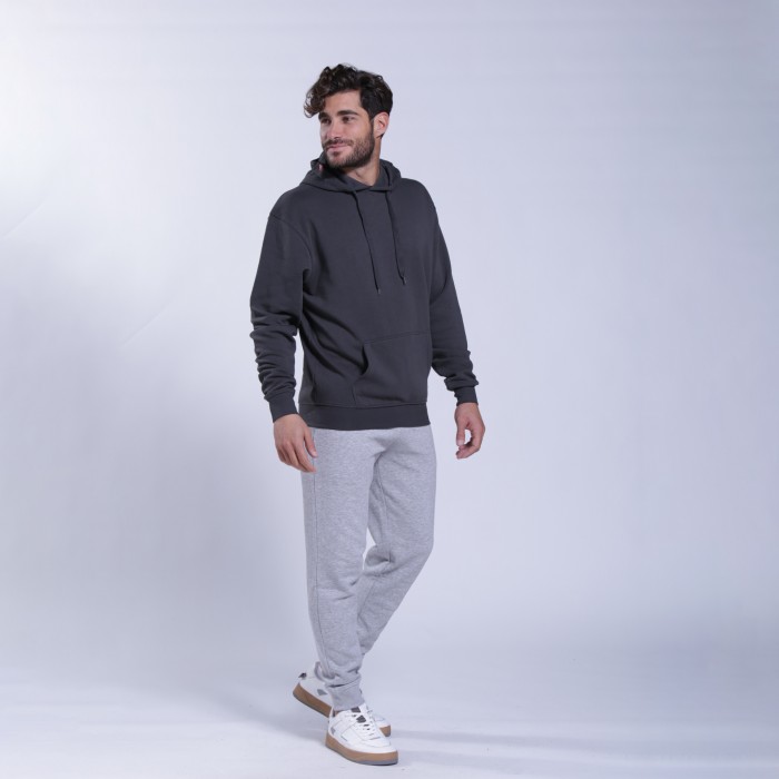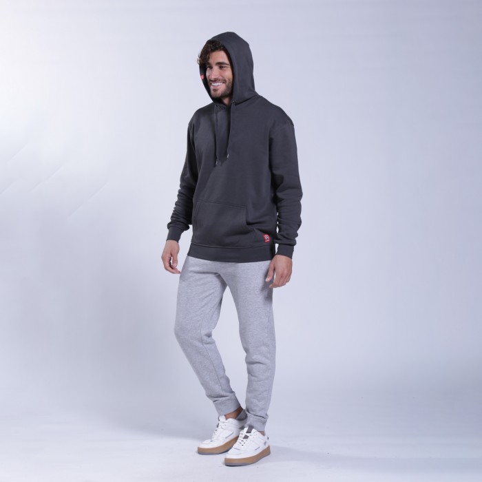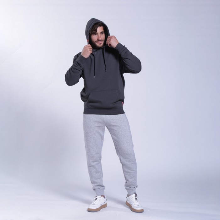 Unisex MOLECULE® pullover hoodie with a regular fit, made from a cotton and polyester blend. With a hood with an adjustable cord and kangaroo pocket, in an dark grey color.