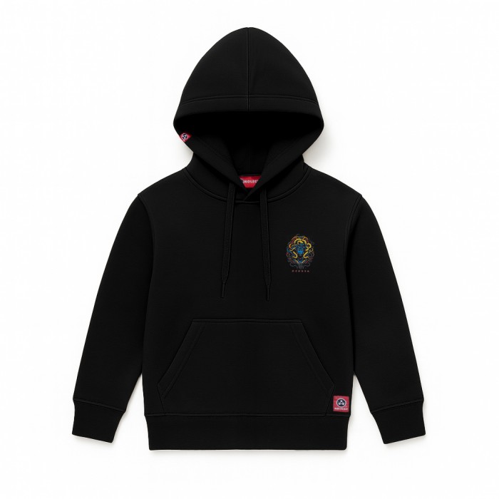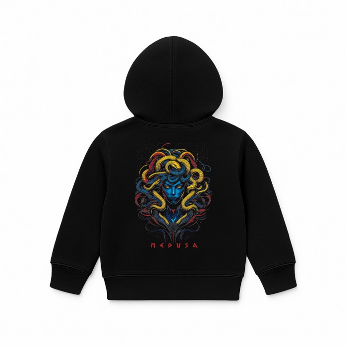 Kids Unisex Pullover Hoodie MOLECULE® 331 MEDUSA DTF Cotton Blend 300 Gsm Regular Fit Black