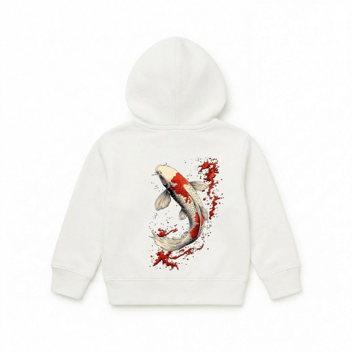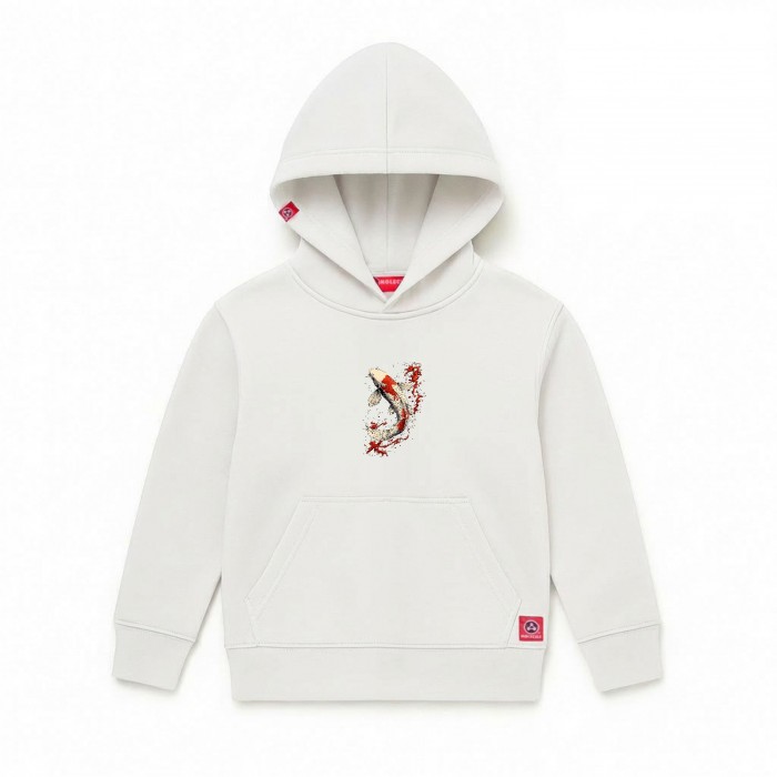 Kids Unisex Pullover Hoodie MOLECULE® 331 KOI DTF Cotton Blend 300 Gsm Regular Fit White