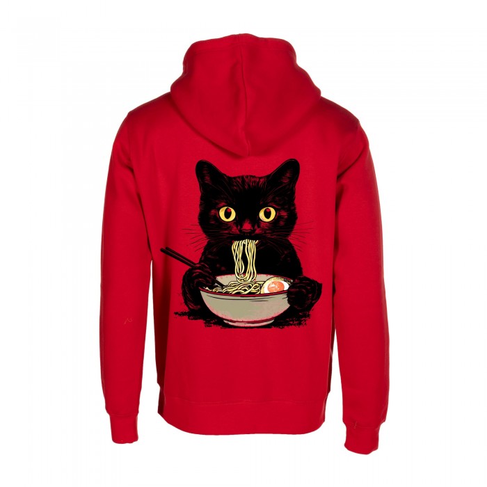 Unisex Pullover Hoodie MOLECULE® 332 RAMEN CAT DTF Print Cotton Blend 300 Gsm Regular Fit Red