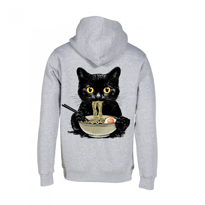 Unisex Pullover Hoodie MOLECULE® 332 RAMEN CAT DTF Print Cotton Blend 300 Gsm Regular Fit Sport Grey