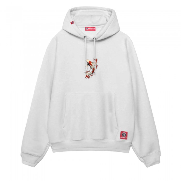 Pullover Hoodie MOLECULE® 332 KOI I DTF Print Cotton Blend 320 Gsm Regular Fit White
