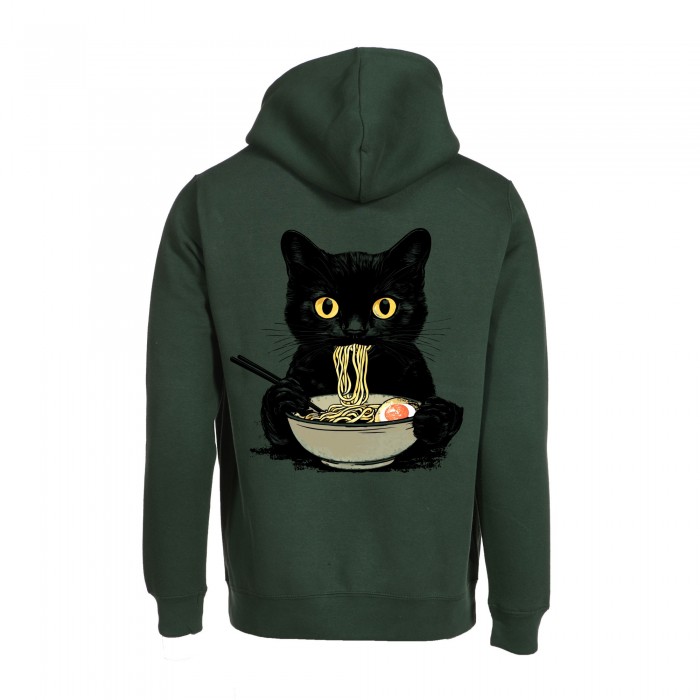 Unisex Pullover Hoodie MOLECULE® 332 RAMEN CAT Cotton Blend 300 Gsm Regular Fit Forest Green