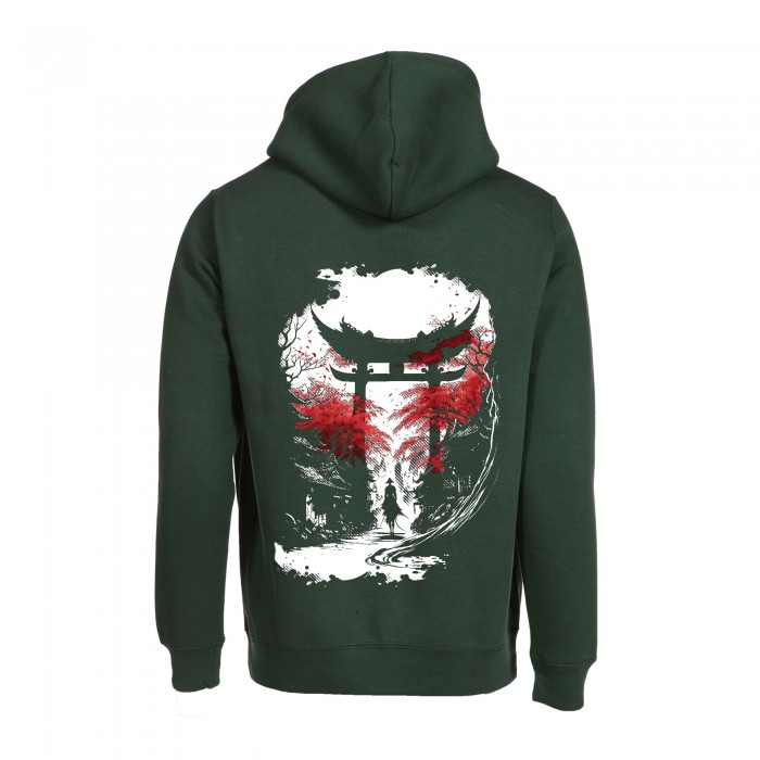 Unisex Pullover Hoodie MOLECULE® 332 TORII GATE Cotton Blend 300 Gsm Regular Fit Forest Green