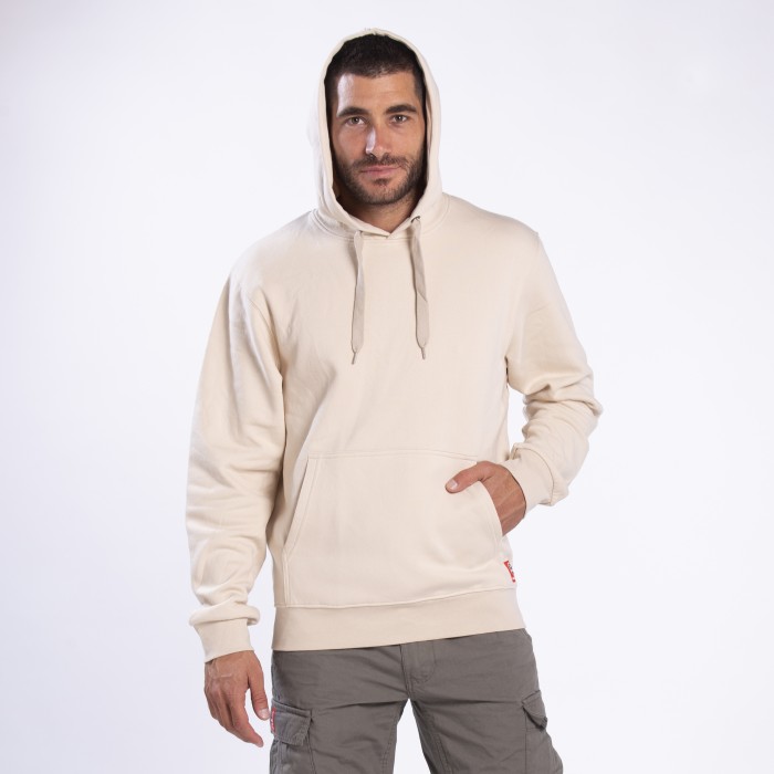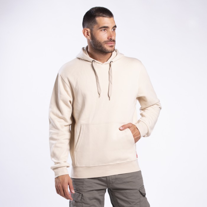 Unisex MOLECULE® pullover hoodie with a regular fit, made from a cotton and polyester blend. With a hood with an adjustable cord and kangaroo pocket, in an off-white beige color.