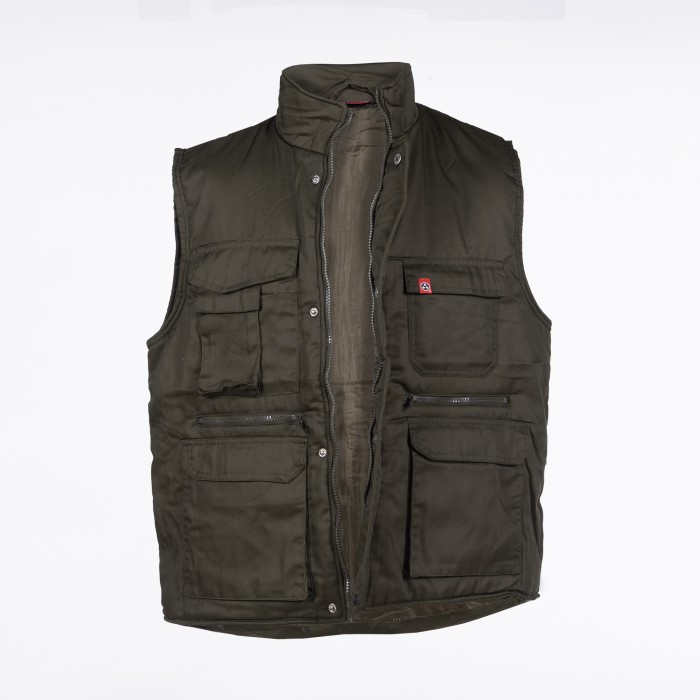 The MOLECULE® 060 is a rugged worker cargo vest crafted from 100% cotton and designed with multiple storage pockets for maximum functionality. Its regular fit and high collar provide comfort and protection, ideal for work environments and outdoor use.