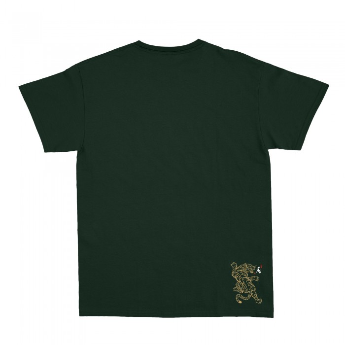 Unisex Short Sleeves T-Shirt MOLECULE® 1100 Golden Tiger Print Cotton 150 Gsm Regular Fit Forest Green.