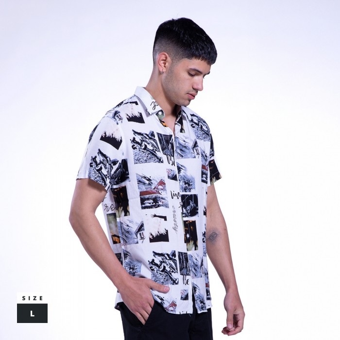 Shirt Life Print Viscose Short Sleeves White