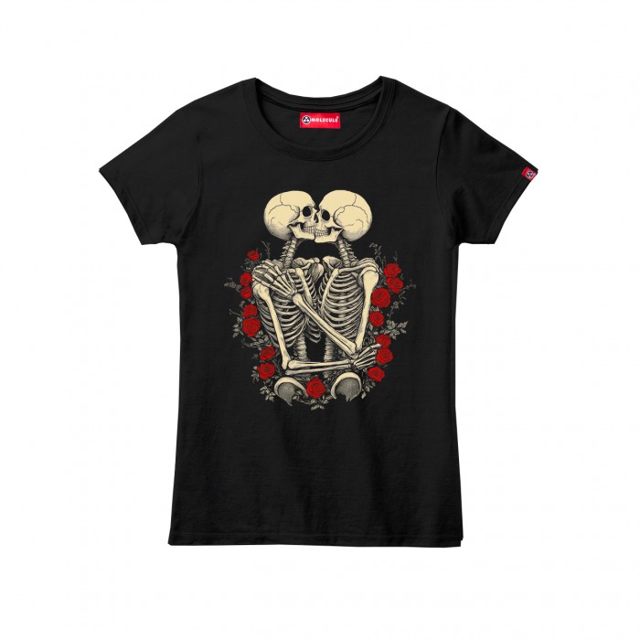 Women Short Sleeve T-Shirt MOLECULE® 1110 SKELETON KISS Cotton 150 Gsm Regular Fit Black