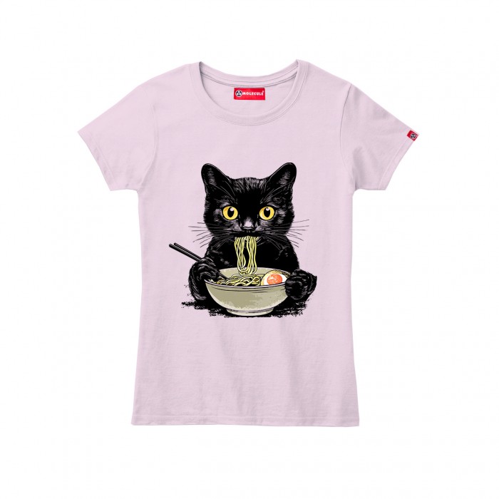 Women Short Sleeve T-Shirt MOLECULE® 1110 RAMEN CAT Cotton 150 Gsm Regular Fit Pink