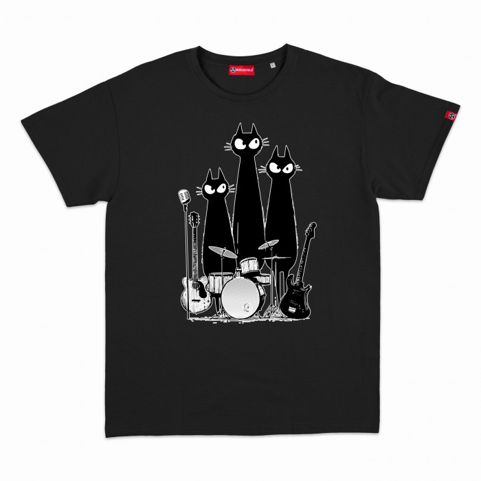Unisex Short Sleeves T-shirt MOLECULE® 1100 CAT BAND Round Neck Cotton 150 Gsm Regular Fit Black