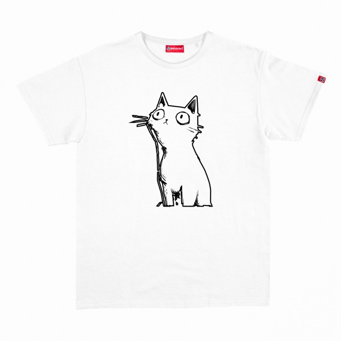 Unisex Short Sleeves T-shirt MOLECULE® 1100 GUILTY CAT Round Neck Cotton 150 Gsm Regular Fit White