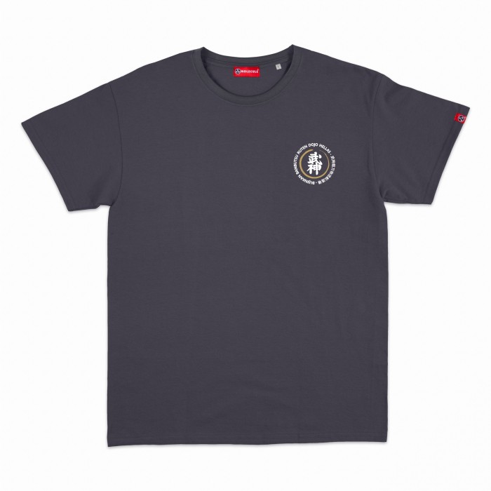 Unisex Short Sleeves T-shirt MOLECULE® 1100 BBDRH Golden Backfront Round Neck Cotton Regular Fit Dark Grey